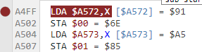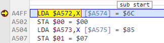 this little bit of code looks like it's loading a pointer into $00 and $01 to use to transfer a tilemap...